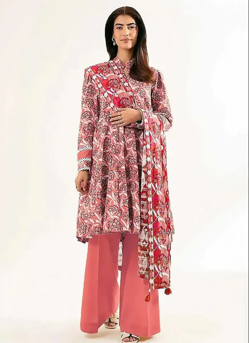Elevate your wardrobe with this stunning 3-piece unstitched linen suit in soft pink. The set features a beautifully printed shirt, matching dupatta, and plain trouser, offering endless styling possibilities. With generous cutting measurements—3.0 meters for the shirt, 2.5 meters each for the trouser and dupatta—you'll have ample fabric to customize the fit to your preferences. Perfect for creating a personalized ensemble that reflects your unique style. Please note: slight variations in color may occur due to lighting differences, and measurements may vary by 1-3 cm due to manual processes.